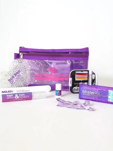 This pouch is filled with answers for all the everyday emergencies you face during your schedule of endless practices and performances. Whether in studio or on stage, keep this hardworking little kit handy in your dance bag so you'll always have a solution to your dancer problems.